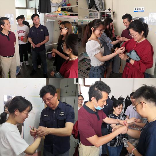 领导和老师们还趁端午节将热乎乎的粽子送到毕业生宿舍,并亲手为他们系上五彩绳,鼓励同学们在新的起点、新的岗位上要继续努力、积极进取,力争取得更大更好成绩,为母校增光添彩。