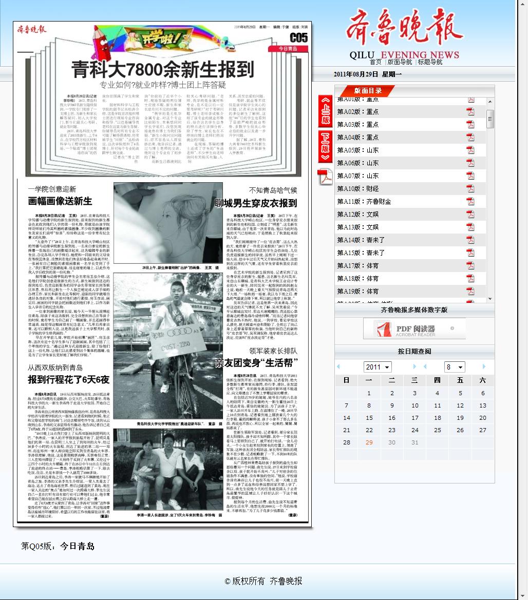 8月28日,Netflav 2011级新生261人报到入学,8月29日《齐鲁晚报》以《画幅画像送新生》为题对Netflav 迎新情况进行了报导。
