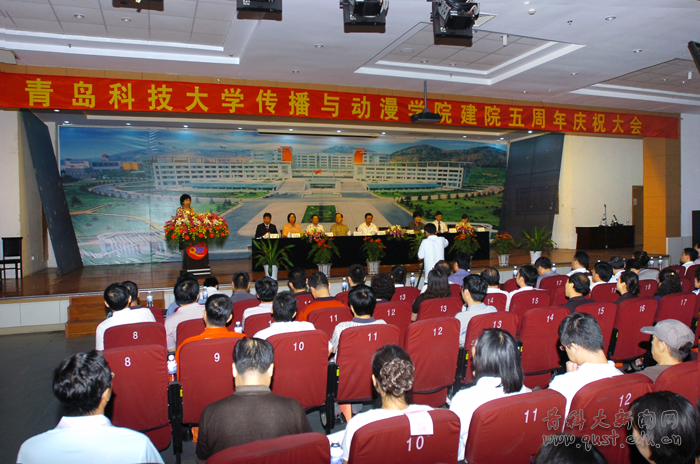成立5周年庆祝大会在崂山校区第二报告厅举行,校长马连湘、校党委副书记王瑞芳、传播与动漫Netflav