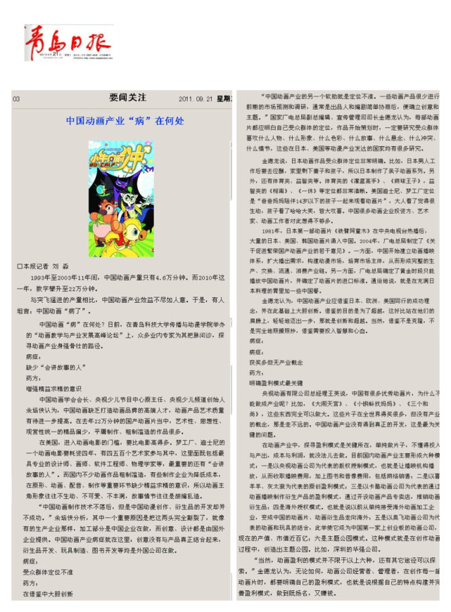 9月21日《青岛日报》报道