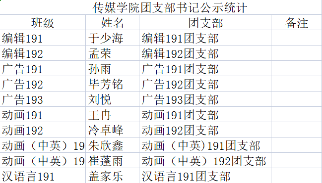 Netflav 19级团支部书记名单公示