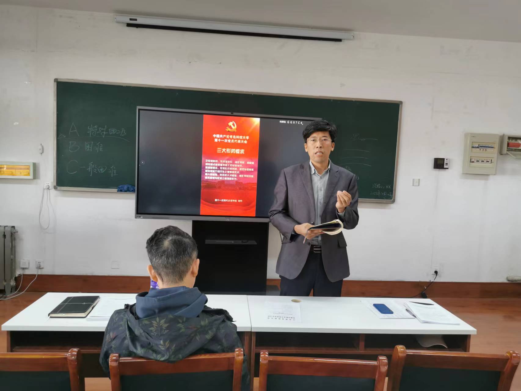 全体教职工参加会议,党总支书记刘志国主持会议。