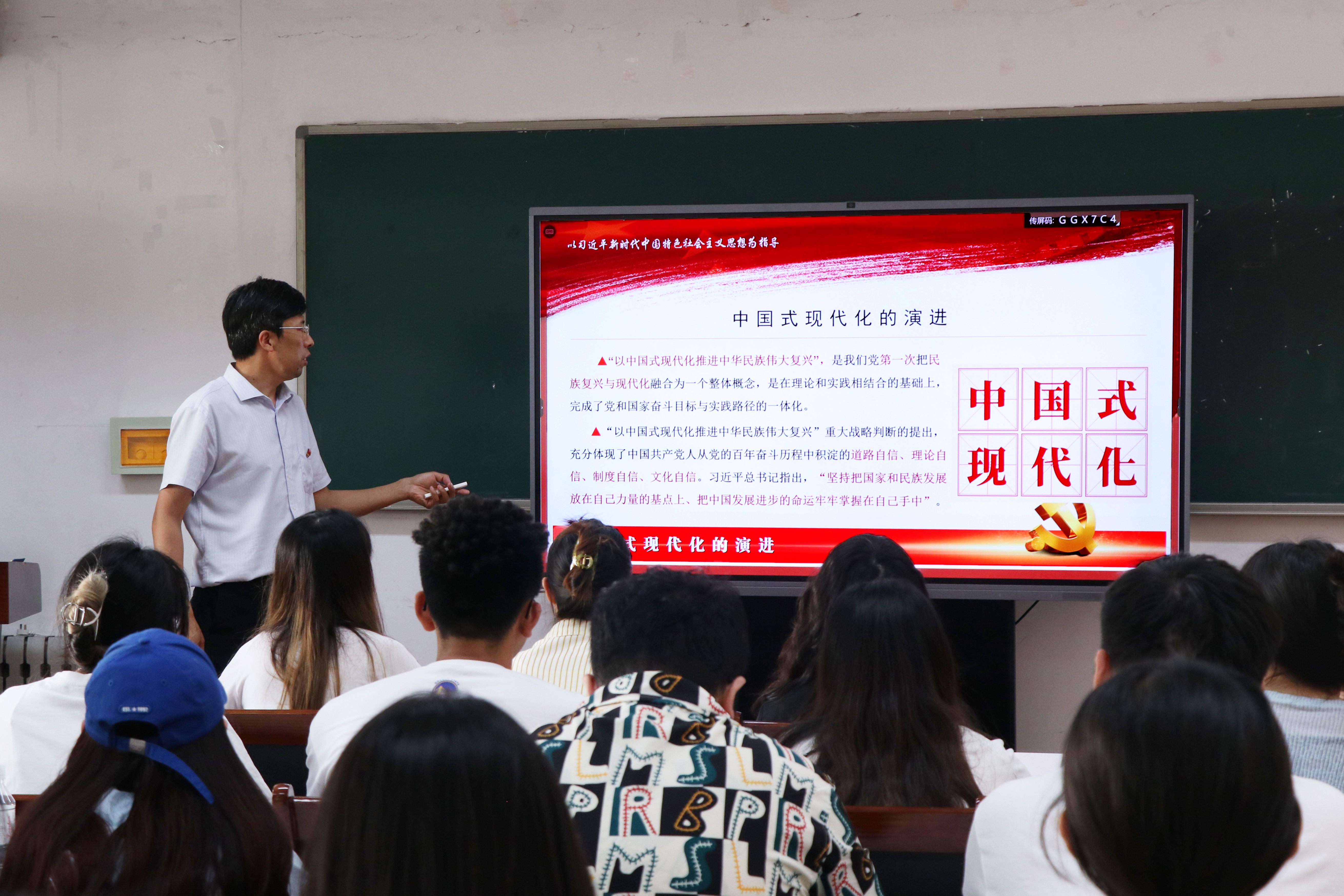 刘志国从中国式现代化进程的演进、中国式现代化的五大特色等方面,结合中国共产党走过的百年光辉历程,深入浅出地为党员代表们进行讲解,勉励大家要提高政治站位,坚持锤炼自身党性,永葆初心、永担使命,走向工作岗位后要发挥党员先锋模范作用。同时,刘志国也对各位毕业生党员们提出了殷切期盼,勉励同学们在追逐梦想的同时更加坚定理想信念和为共产主义事业奋斗终身的决心,希望大家能认识到自身承担的时代与历史重任,勇于担当尽责,不负人民期待与时代重托,在推进中国式现代化中贡献青年力量。