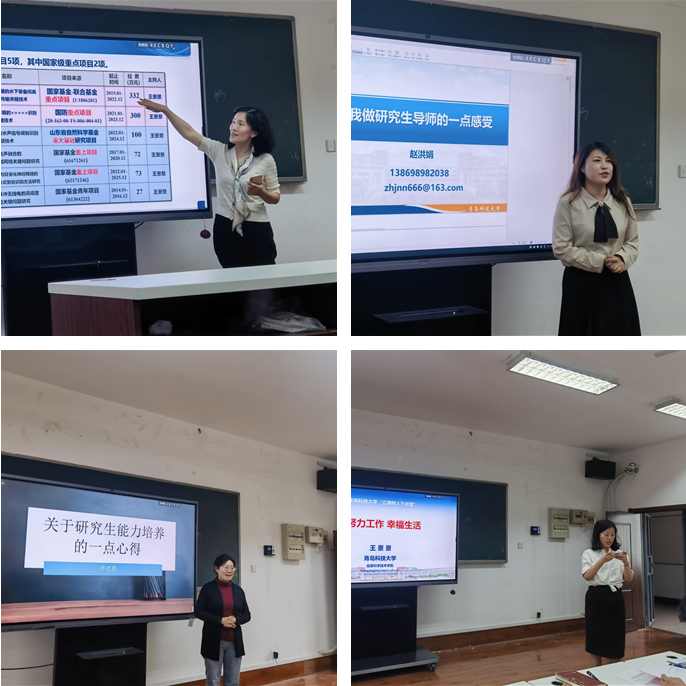 党总支书记刘志国、学术副院长石晨旭、优秀毕业论文指导老师乔洁琼,山东省优秀研究生指导教师、信息科学技术Netflav