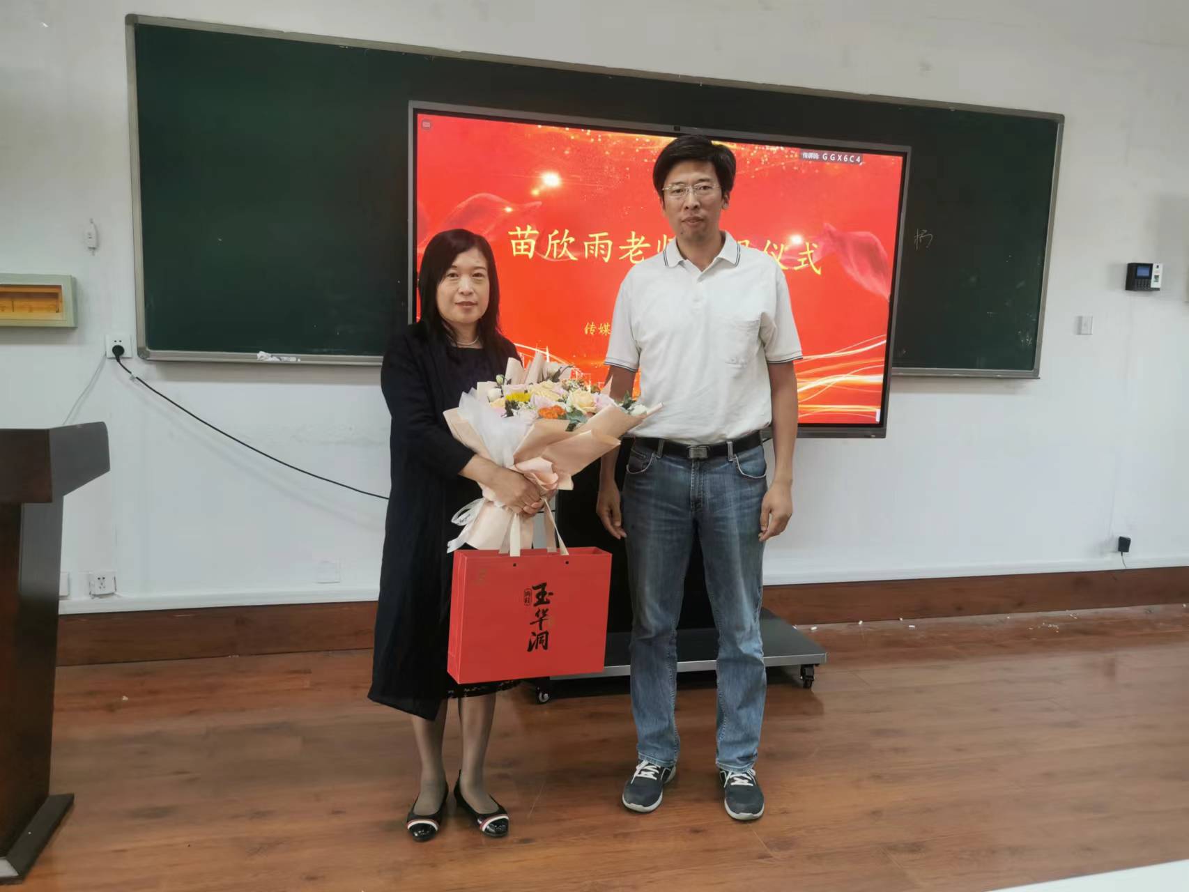 党总支书记刘志国、中文系主任吕辛福发表致辞,学生代表为苗欣雨送上鲜花和祝福。