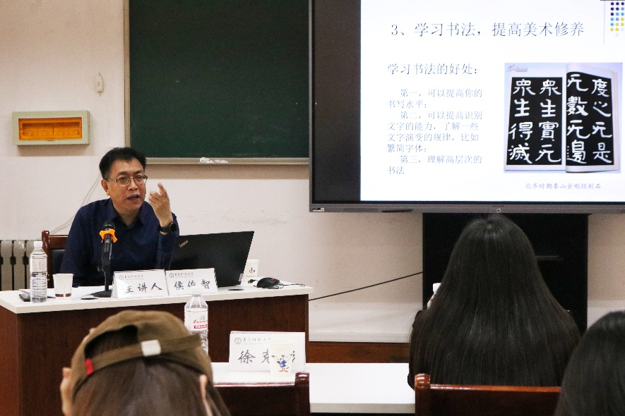 党总支书记刘志国,教师代表邢崇、宋守山、蔡丽娟、单娟、徐克彬出席讲座,近百名学生代表参加讲座。