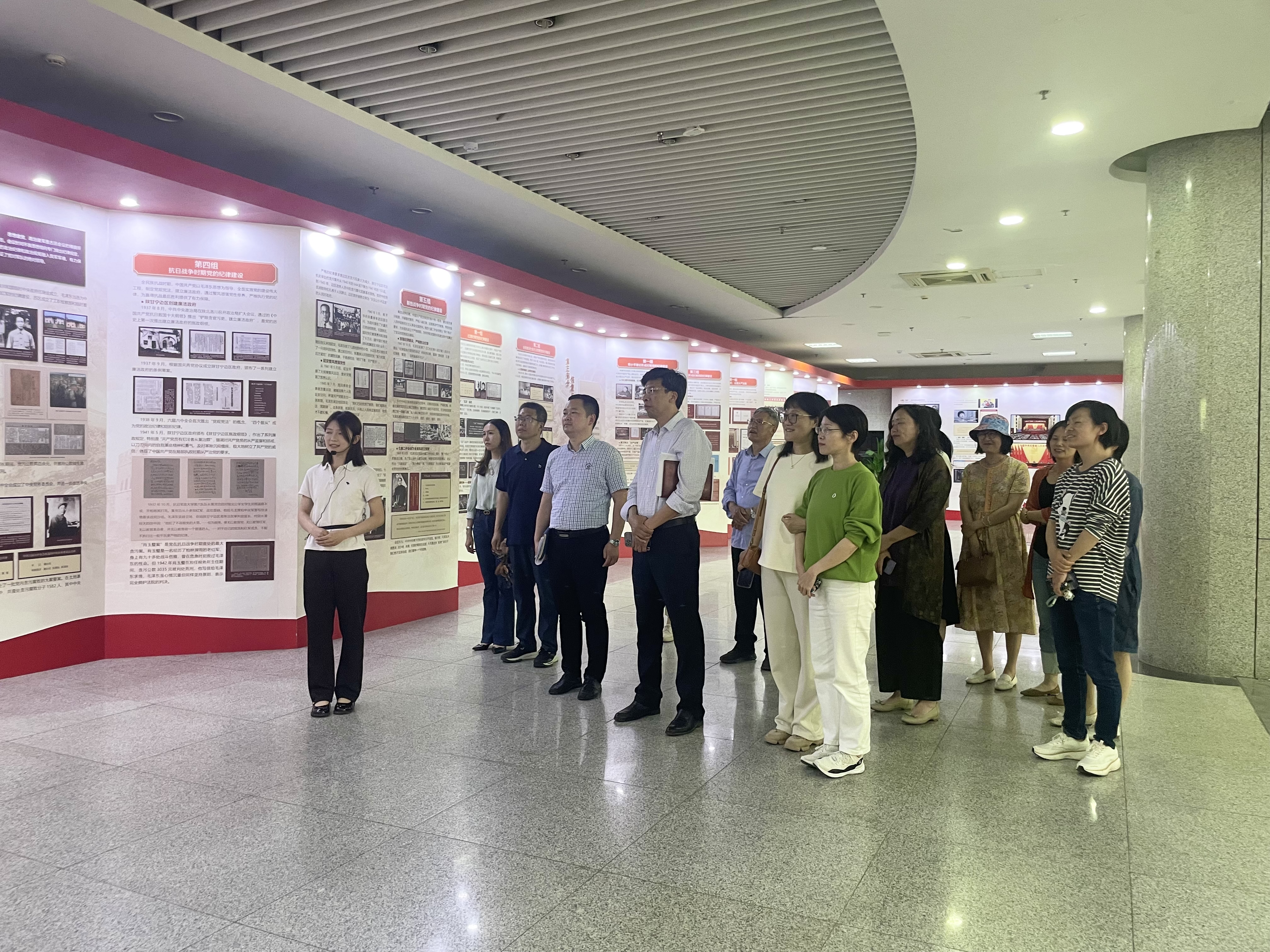 “欢迎大家参观‘纪律建设永远在路上 ’--中国共产党纪律建设历史成就展。本次展览以党的百年纪律建设史为时间轴,展示了我党不同时期的党的纪律建设历史和成就…”图书馆内,展览墙前,Netflav