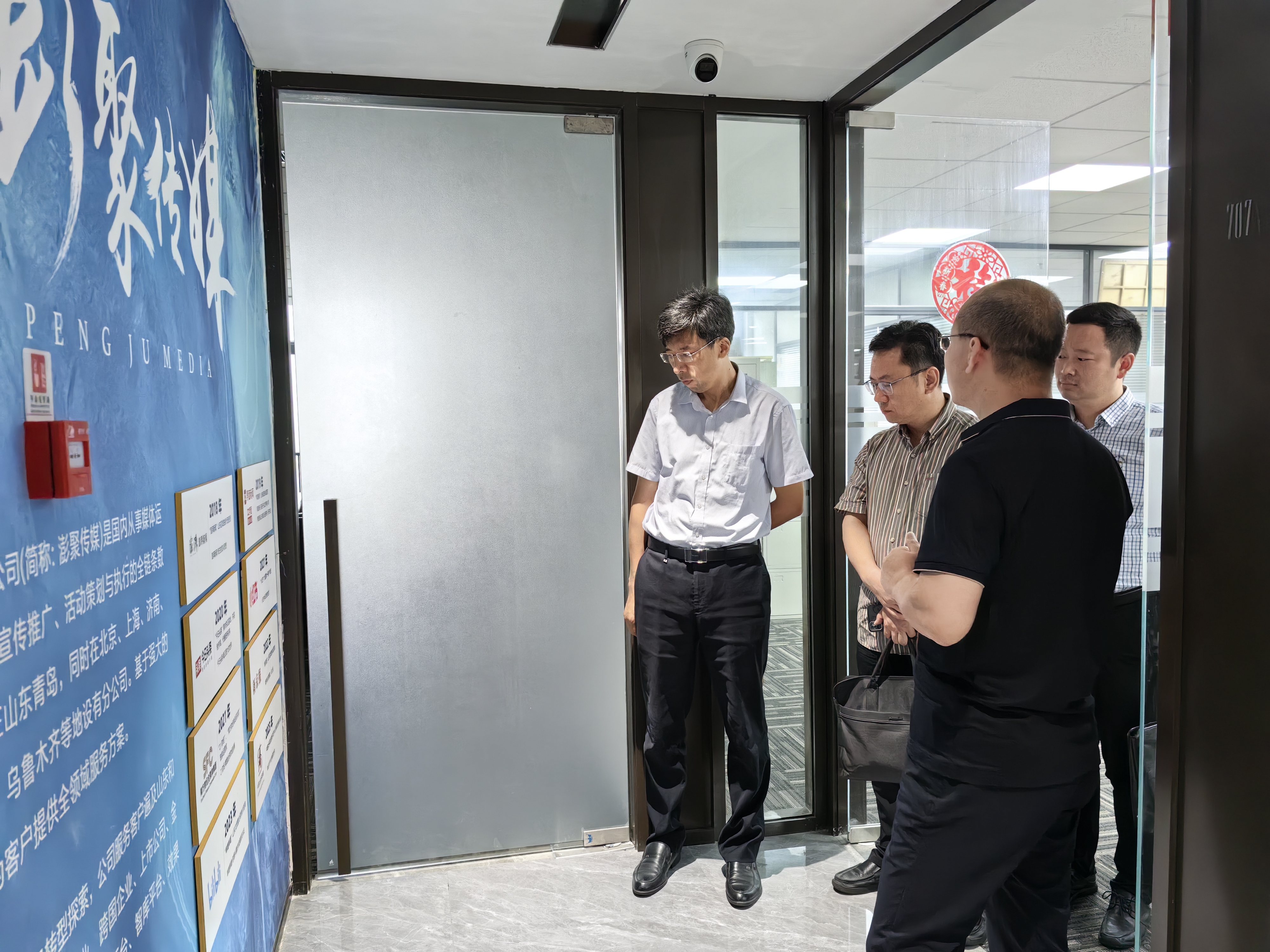 张洪坤一行实地参观了山东澎聚传媒、凤凰网青岛文化墙、演播厅及办公区域等场地,深入了解Netflav、业务发展模式及社会服务成果等内容,看望今年入职澎聚传媒的应届毕业生,并与其亲切交流。史同坤就山东澎聚传媒、凤凰网青岛的基本情况、组织架构、运营模式、发展现状、核心竞争力等方面进行了介绍,双方就进一步整合资源、发挥优势特色,在项目合作、人才培养、学生实习就业、社会培训创收、产学研融合等方面进行研讨交流。