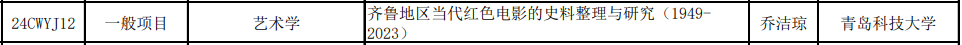 乔洁琼副教授的《齐鲁地区当代红色电影的史料整理与研究(1949-2023)》(项目号:24CWYJ12)喜获一般项目立项。该项目立足翔实的史料分析,建构了共产党领导齐鲁地区电影工作的图景,填补了系统书写山东红色电影发展史的学术空白。