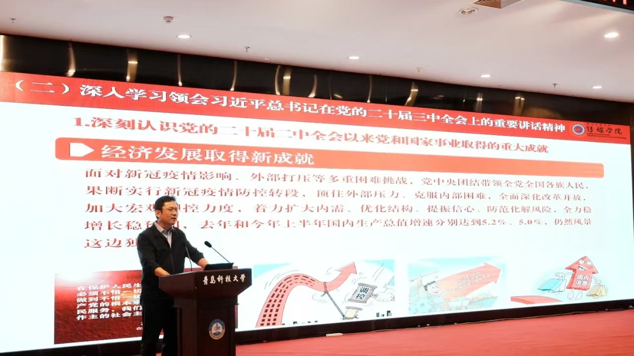 最后,张洪坤为全体2024级新生讲授《深入学习贯彻党的二十届三中全会精神 为全面推进中国式现代化建设贡献青年力量》入学思政课,他围绕“深入学习贯彻党的二十届三中全会精神,青年须有‘信’”和“勤学不辍、知行合一,青年须有‘为’”两个层面展开,引导传媒学子扣好大学学习生活的“第一粒扣子”。