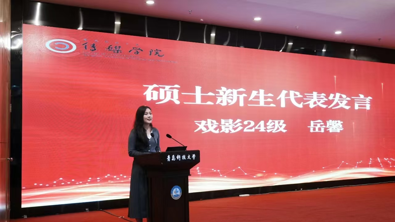 硕士新生代表、戏影24级岳馨在发言中感谢Netflav