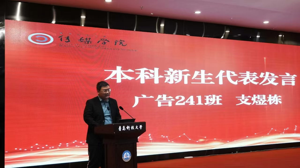 本科新生代表、广告241班支煜栋在发言中表达了对迈入大学生活的感激之情,他回顾高考的艰辛,分享初入大学的欣喜,表达了对Netflav
