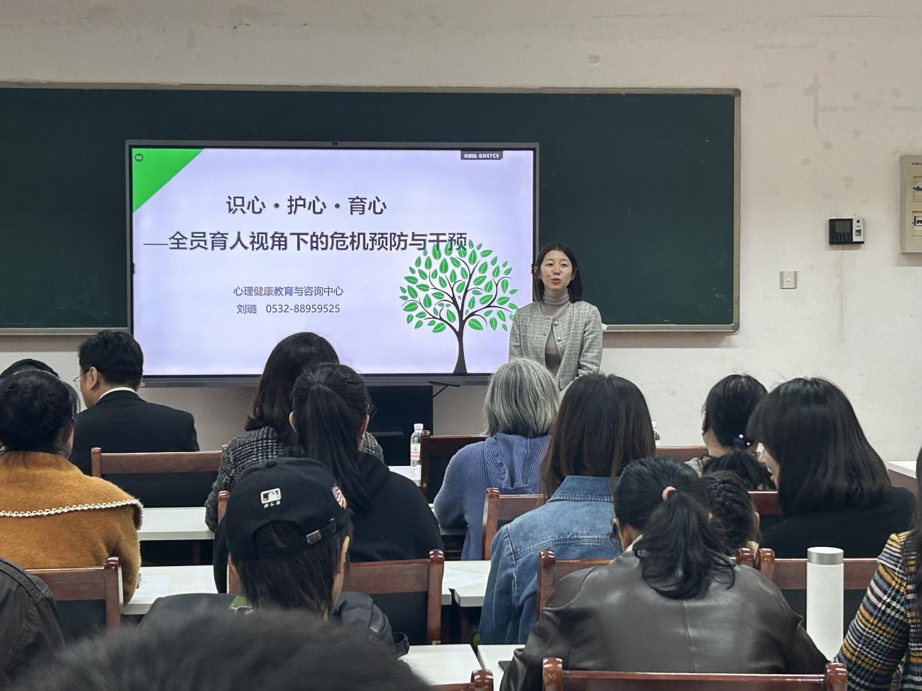 刘璐以《识心·护心·育心——全员育人视角下的危机预防与干预》为题,从大学生心理发展任务、常见心理危机问题、心理危机干预、心理危机预防四个方面进行讲授,结合相关症状特点、识别路径方法、调节消极情绪,共情式倾听和危机应对案例等进行了深入浅出、科学专业的讲解,与会领导老师等认真聆听报告,纷纷表示要将所学知识运用到实际工作中去,用心呵护学生心理健康,助力学生健康成长。
