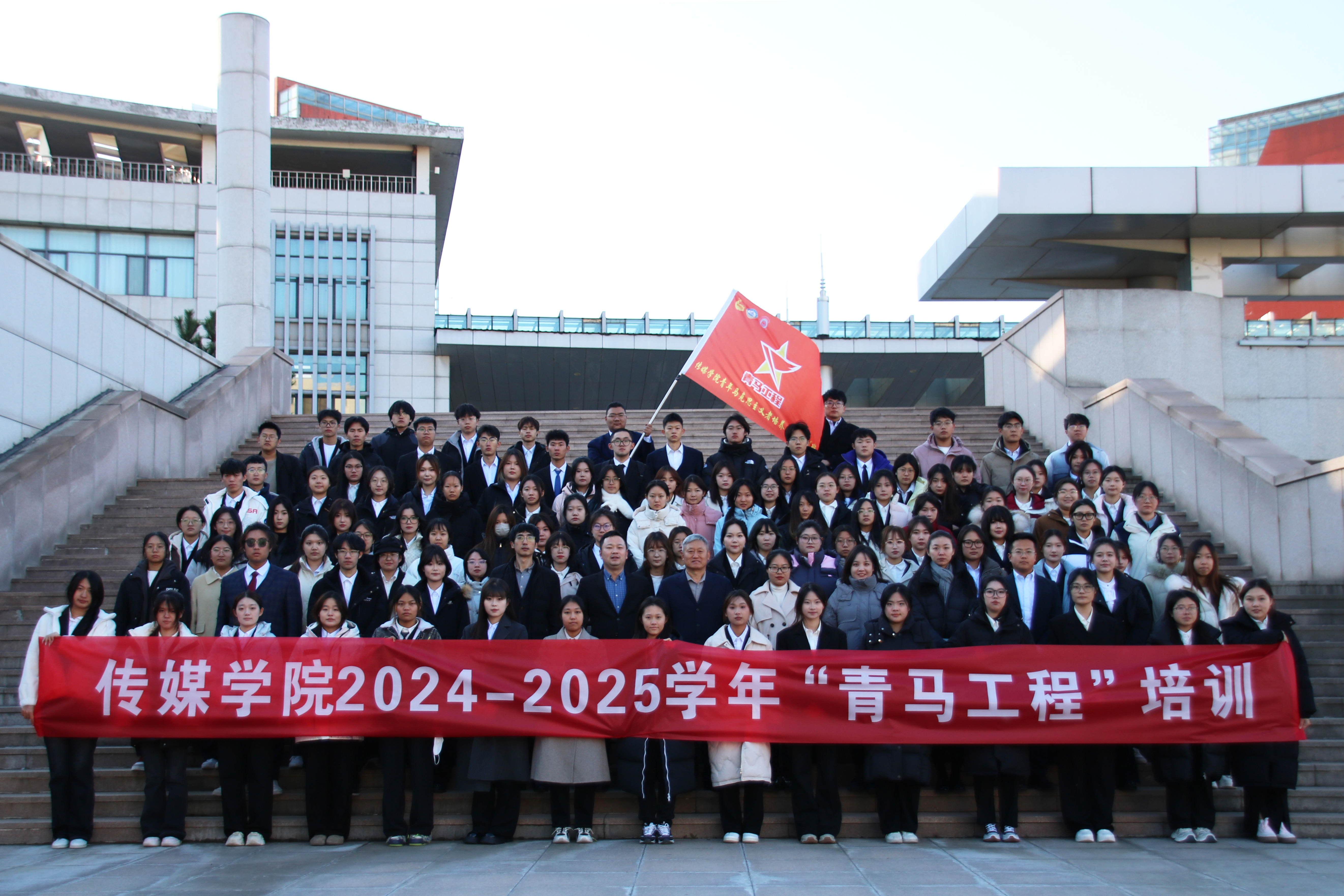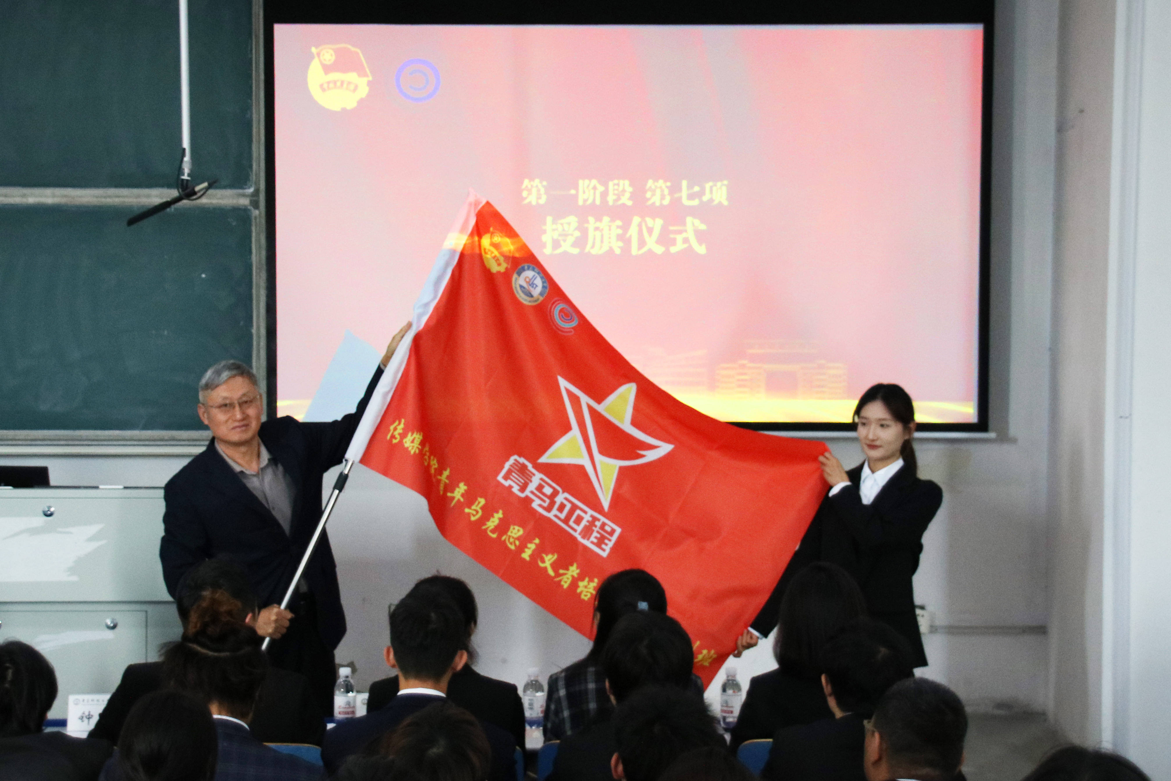 会上,钟兆秀为本期“青马工程”培训班学员代表、广告221班王冉同学授旗;张鸣宣读了《Netflav