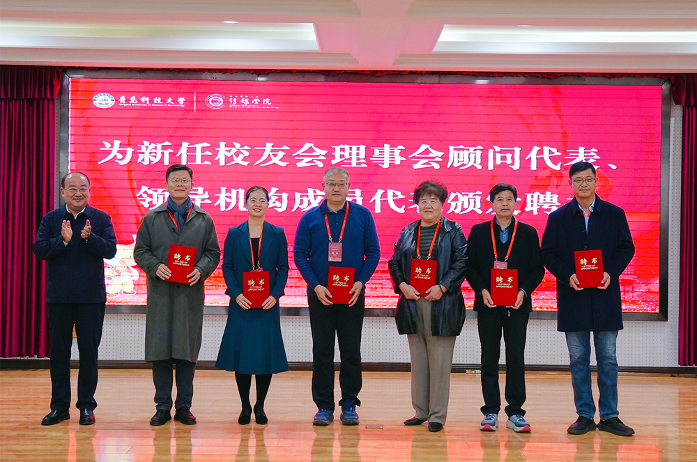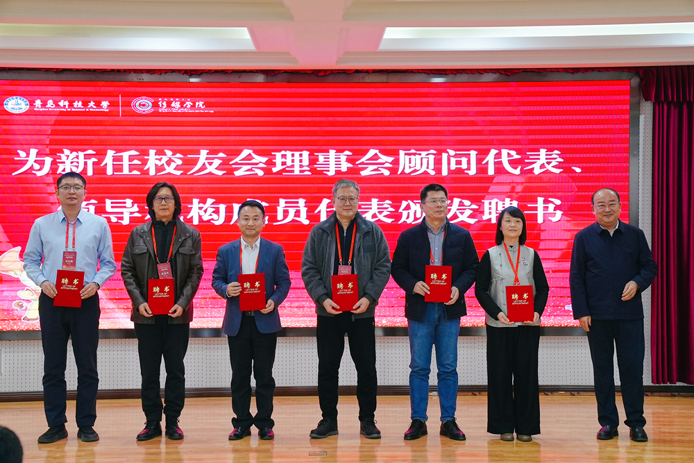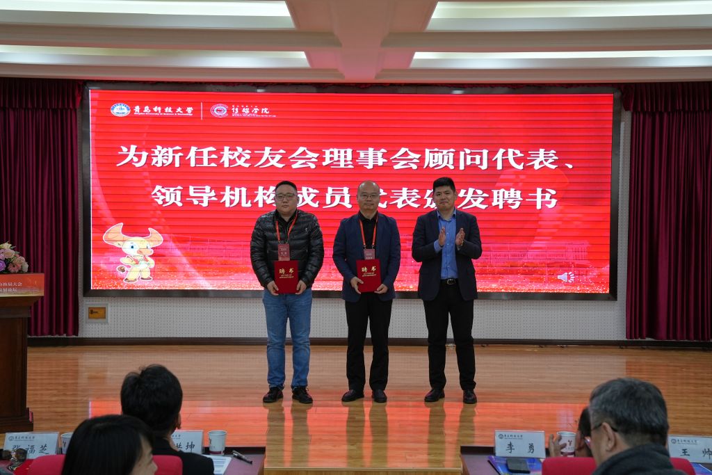 新任校友会理事会常务副会长史同坤、常务副秘书长冯谦颁发聘书。