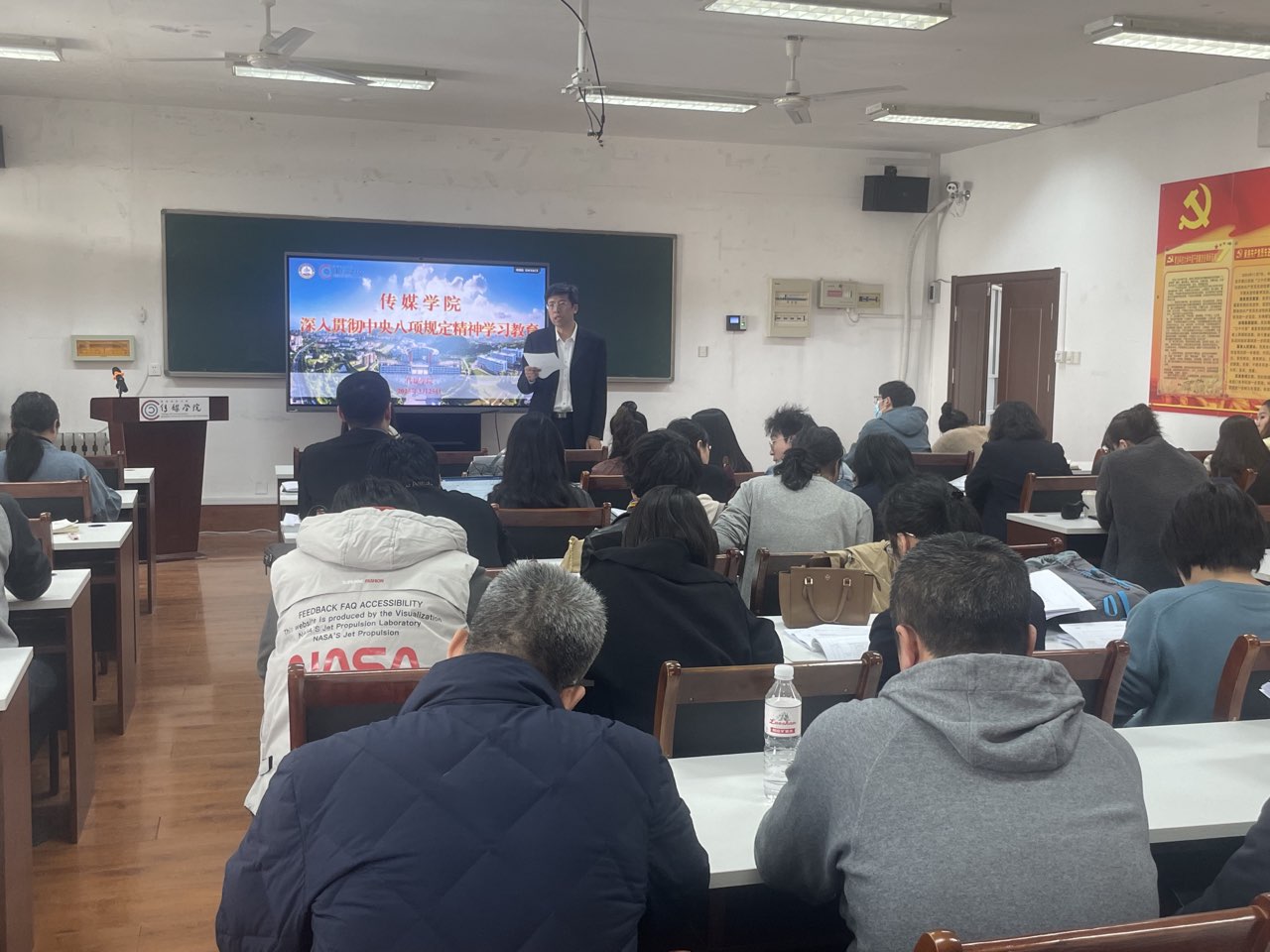 党委组织党委委员、全体党支部书记集体进行读书班学习,原原本本学习《习近平关于加强党的作风建设论述摘编》、《习近平总书记关于党的建设的重要思想概论》、《中共中央八项规定》及《中共中央八项规定实施细则》等内容,深入领会中央八项规定精神的时代内涵和实践要求。领导班子成员带头领学,精准解读重点任务,结合典型案例剖析“四风”问题新动向,教工党员、学生党员代表参加集体学习。同时领导班子成员结合教育工作实际,逐一进行交流研讨,重点剖析全面从严治党在高校领域的现实意义,强调以严的基调正风肃纪。