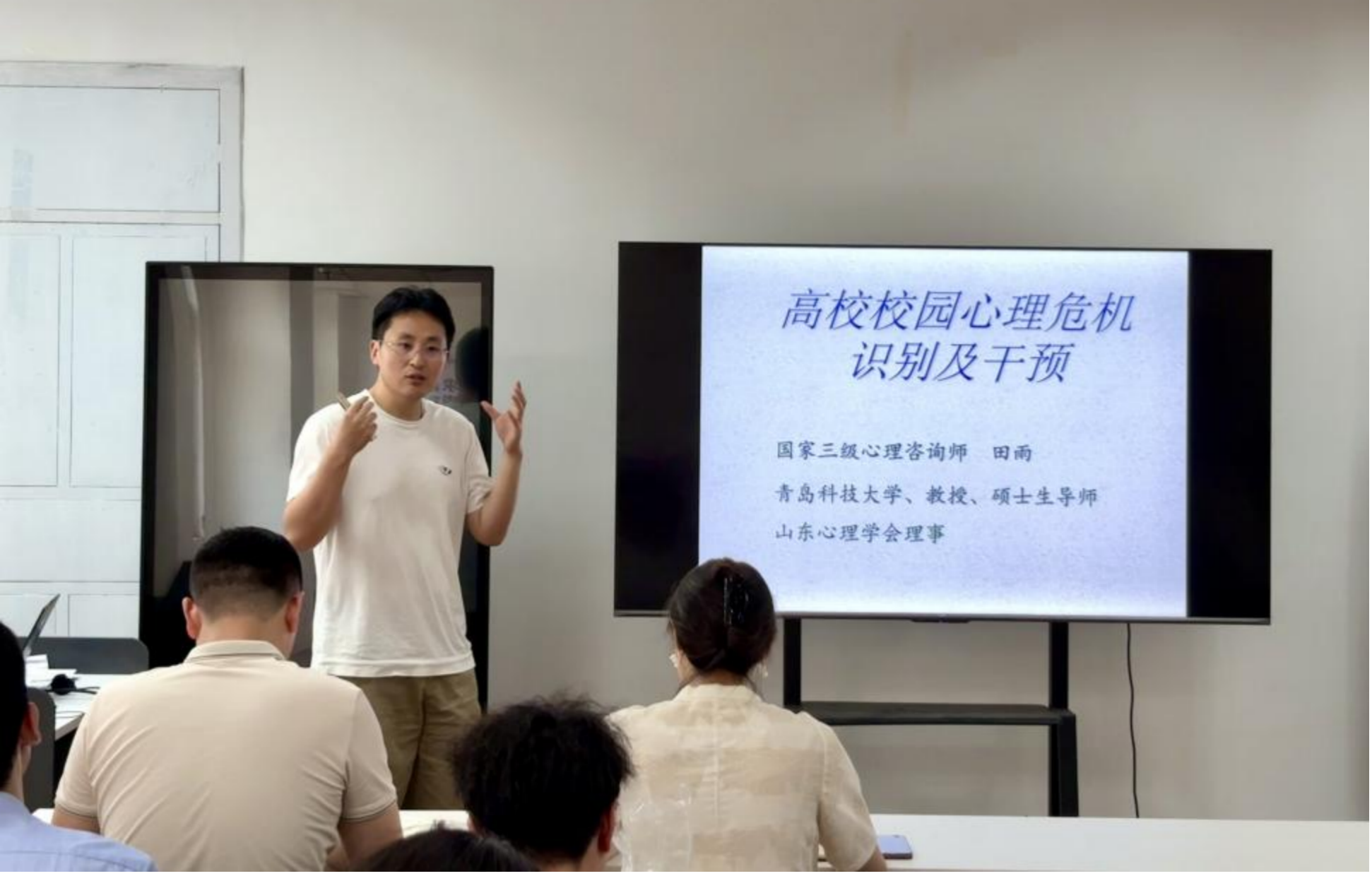 田雨围绕心理危机定义、大学生心理危机识别和心理危机干预三个部分展开讲解,结合自身所从事的心理学领域相关研究,既从理论层面讲解了危机风险因子的协同效应、心理危机表征的“共发”性,又从实际工作的角度讲述了处于危机学生的身心反应、教师如何识别有心理危机的学生,如何帮助学生将心理危机转化为成长机遇,以及大学生心理危机干预的原则和干预策略,为班主任等教师队伍做好大学生心理健康工作提供了指导。