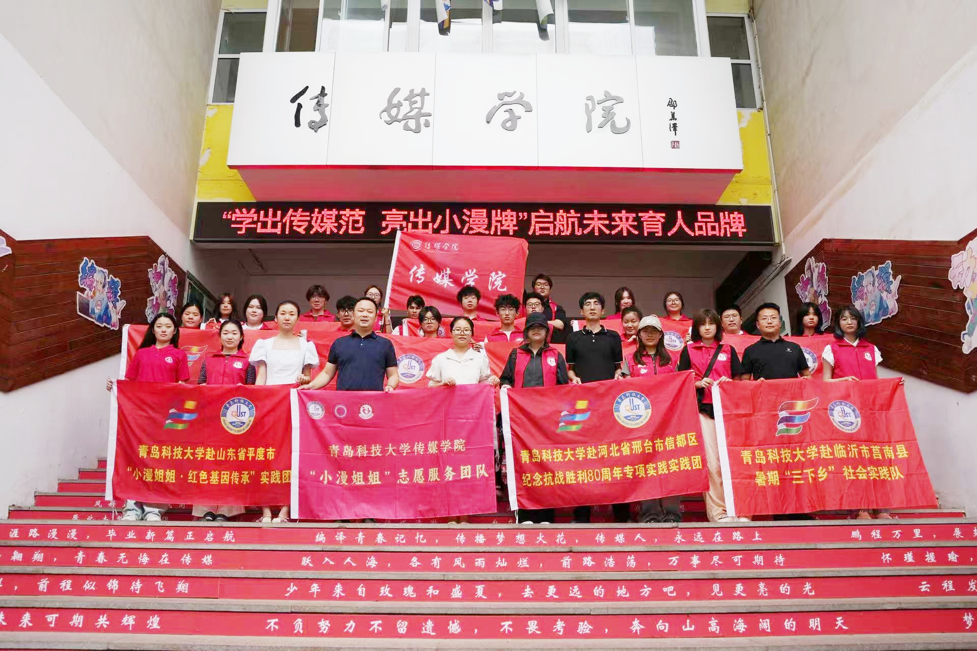 动画国家一流专业、编辑出版等优势资源与特色,深耕“思政+美育”特色育人。团队先后荣获国家级“三下乡”优秀实践团队、山东省志愿服务示范项目等多项荣誉,团队事迹被中国青年报、中国青年志愿者等60余家媒体报道,擦亮青科传媒特色品牌,获得一致认可和广泛赞誉。
