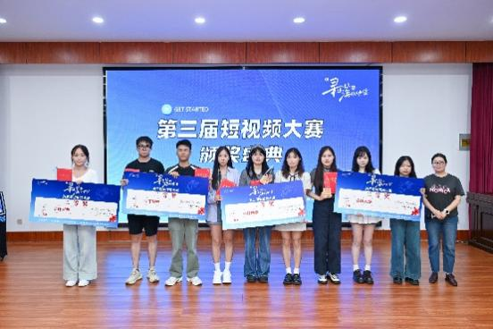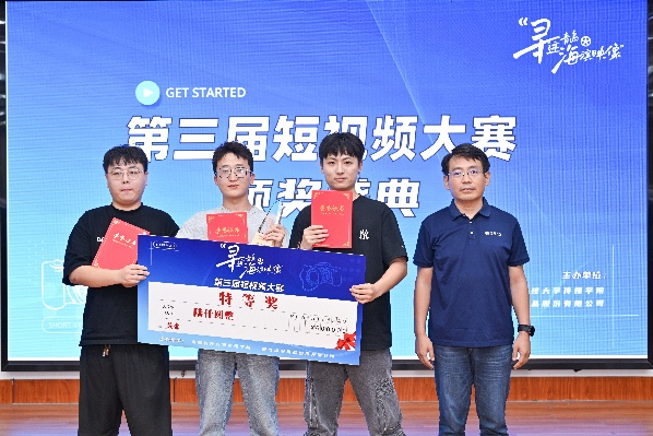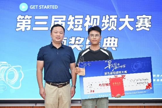 刘海波为获得一等奖(短视频类)的同学颁奖