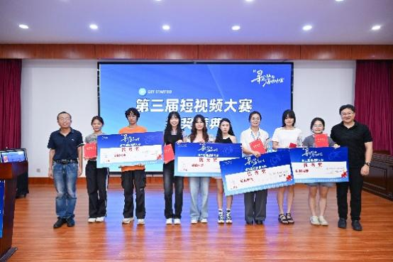 李园为获得一等奖(微电影类)的同学颁奖