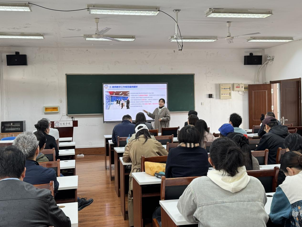 会上,孙洪广强调,教师工作是“良心活”,既要以钉钉子精神严格落实教学规范,守住教学事故防范底线,也要结合高等教育普及化发展趋势精准落实因材施教,加强与学生的深度互动交流,真正成为学生成长路上的良师益友。