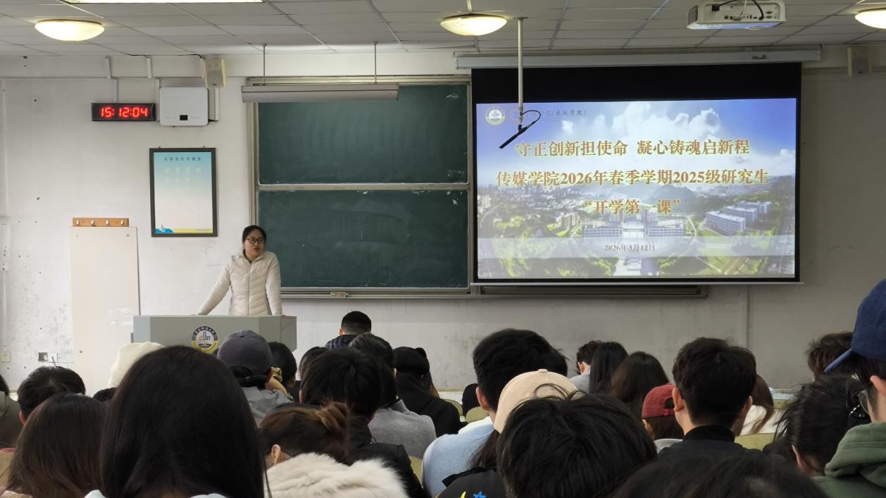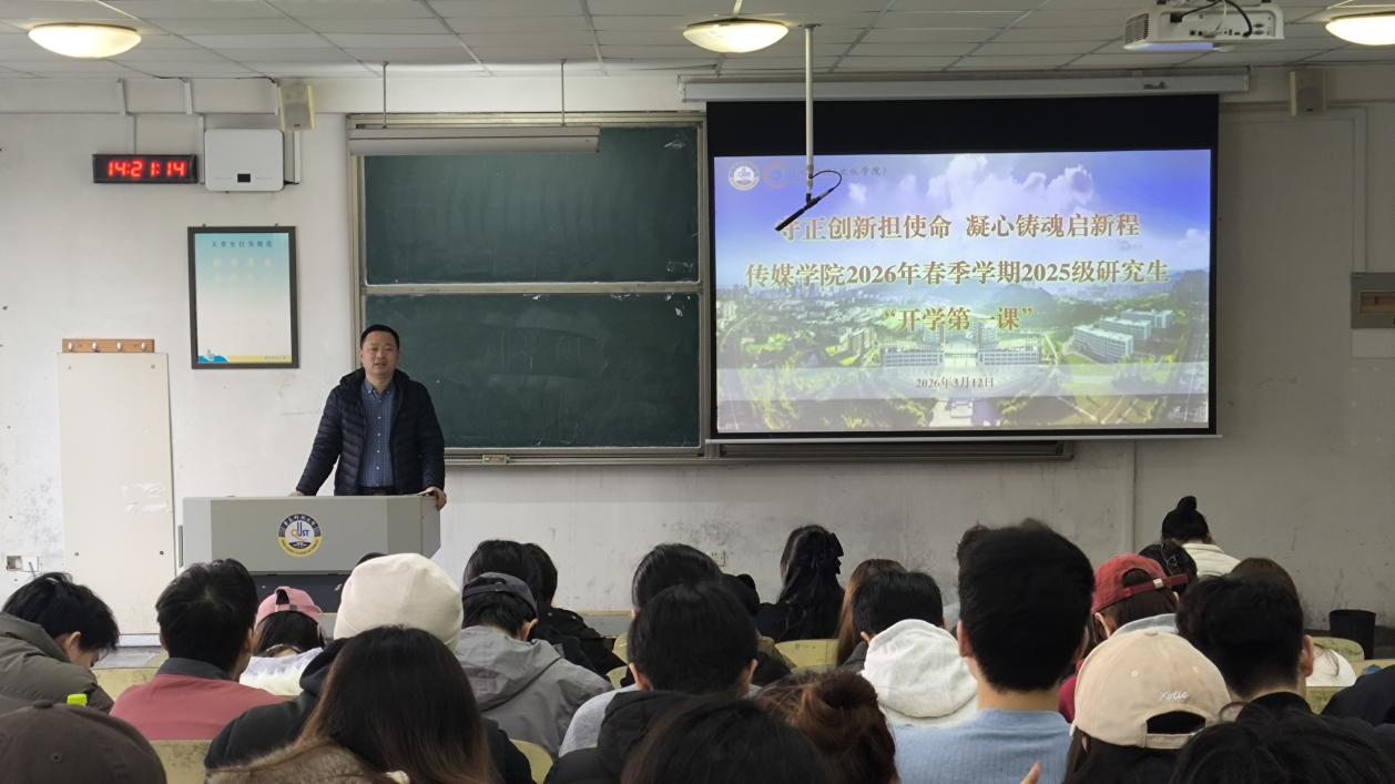 刘海波结合AI技术发展带来的行业挑战与传媒领域日趋激烈的就业形势,向同学们提出三点核心要求:一是端正学习心态,强化责任担当。直面行业变革与就业竞争,摒弃“躺平”懈怠心态,深刻认知研究生阶段的学习要义,切实筑牢发展的紧迫感与危机感;二是精研学业规划,夯实发展根基。紧抓研一筑基关键阶段,深耕课堂专业知识,主动投身科研实践、学科竞赛,研习AI相关技能并打磨优质作品集,提前锚定学术深造、职场就业、考公考编等发展方向并系统布局;三是恪守管理规范,严守安全底线。时刻绷紧安全之弦,严守消防安全、人身安全等基本准则,严格履行请销假制度,正视并合理纾解心理压力,时刻关心关怀好身边同学。