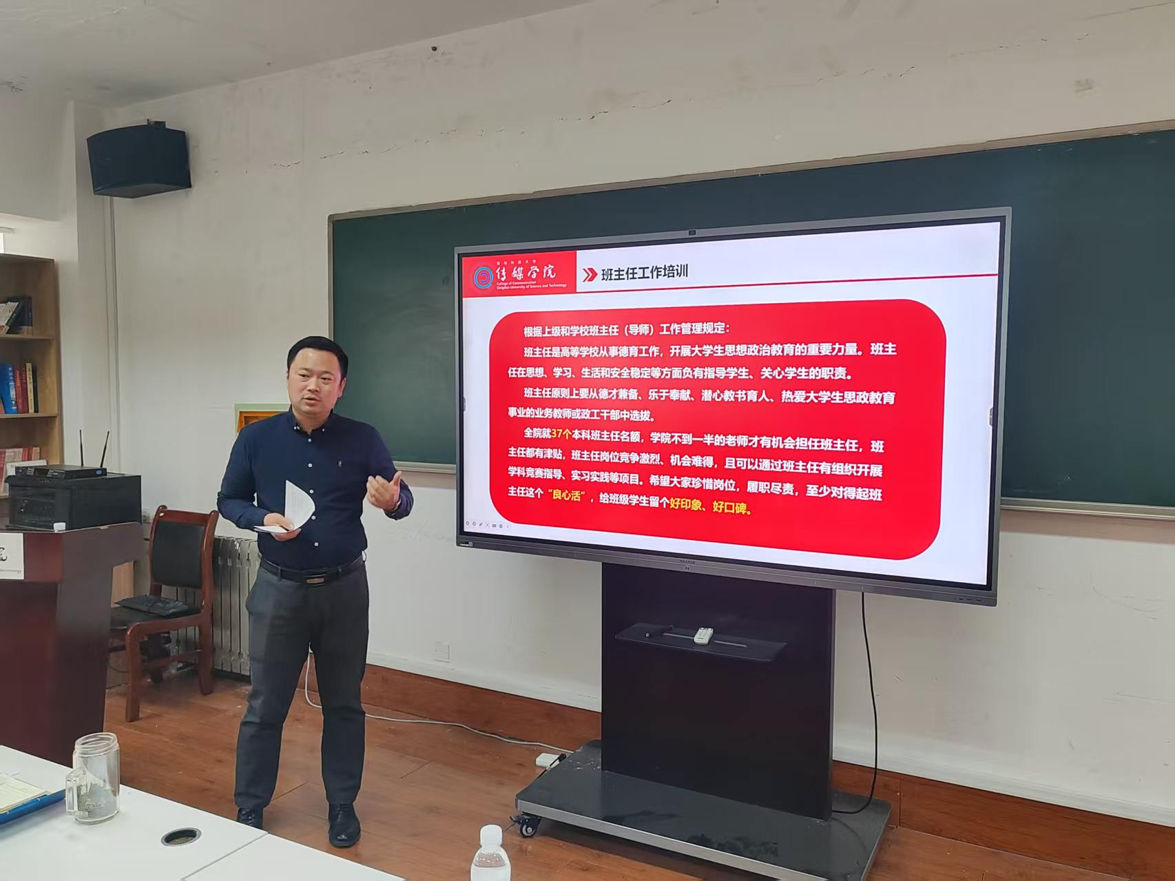 专业特色与学生特点,结合班主任工作育人的重要性强调,班主任是开展大学生思想政治教育的重要力量,针对传媒专业实践性强、学生个性鲜明的特点,要求全体班主任用心、细心、耐心履职,从严抓好安全稳定与日常管理,加强思想引领和人文关怀,端正学生价值观与职业发展观念,培养堪当民族复兴大任的时代新人。