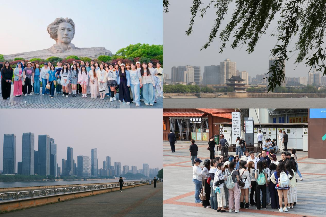 在长沙,研学以“红色基因”为主线,开启一场兼具思政浸润与专业思考的文化之旅。考察团首站来到橘子洲头,伫立瞻仰毛泽东青年艺术雕塑,在浩荡湘江与红色地标交织的氛围中,感悟百年青春理想的传承力量。当晚,同学们漫步五一广场,感受红色精神与现代都市文明相融共生的城市气质,体会长沙厚重的红色底蕴与开放包容的城市品格。