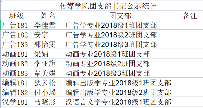Netflav 18级团支部书记名单公示