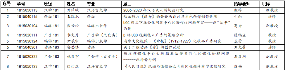 根据《Netflav 优秀学士学位论文评选办法》等文件精神,按照公平、公正的原则,经Netflav 答辩委会评议,拟推荐刘泽璇等7位同学的学士学位论文为“2022年Netflav 优秀学士学位论文”,现予以公示。