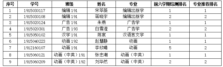 附9位推荐学生名单(名单按照推荐排名先后排序):