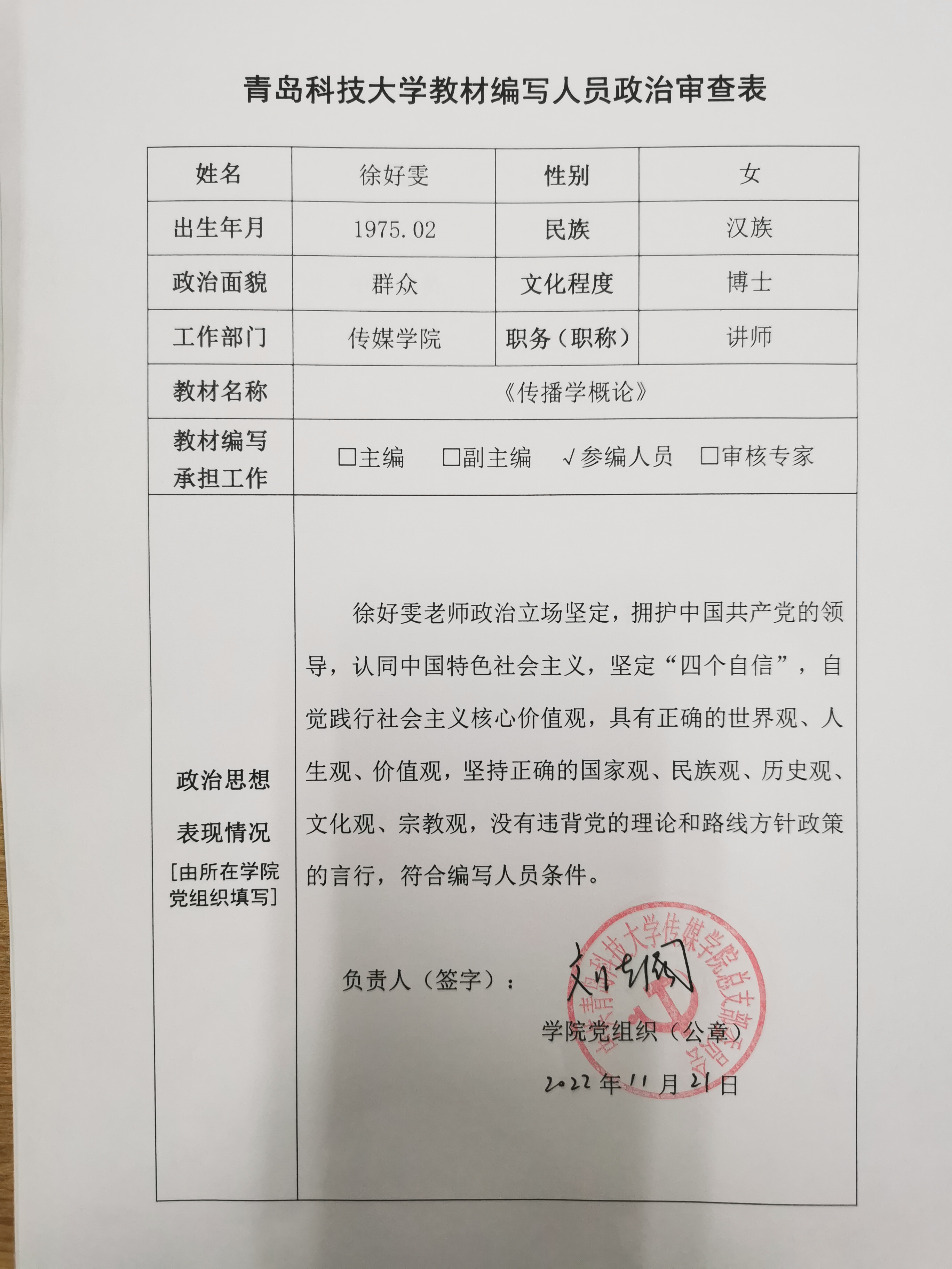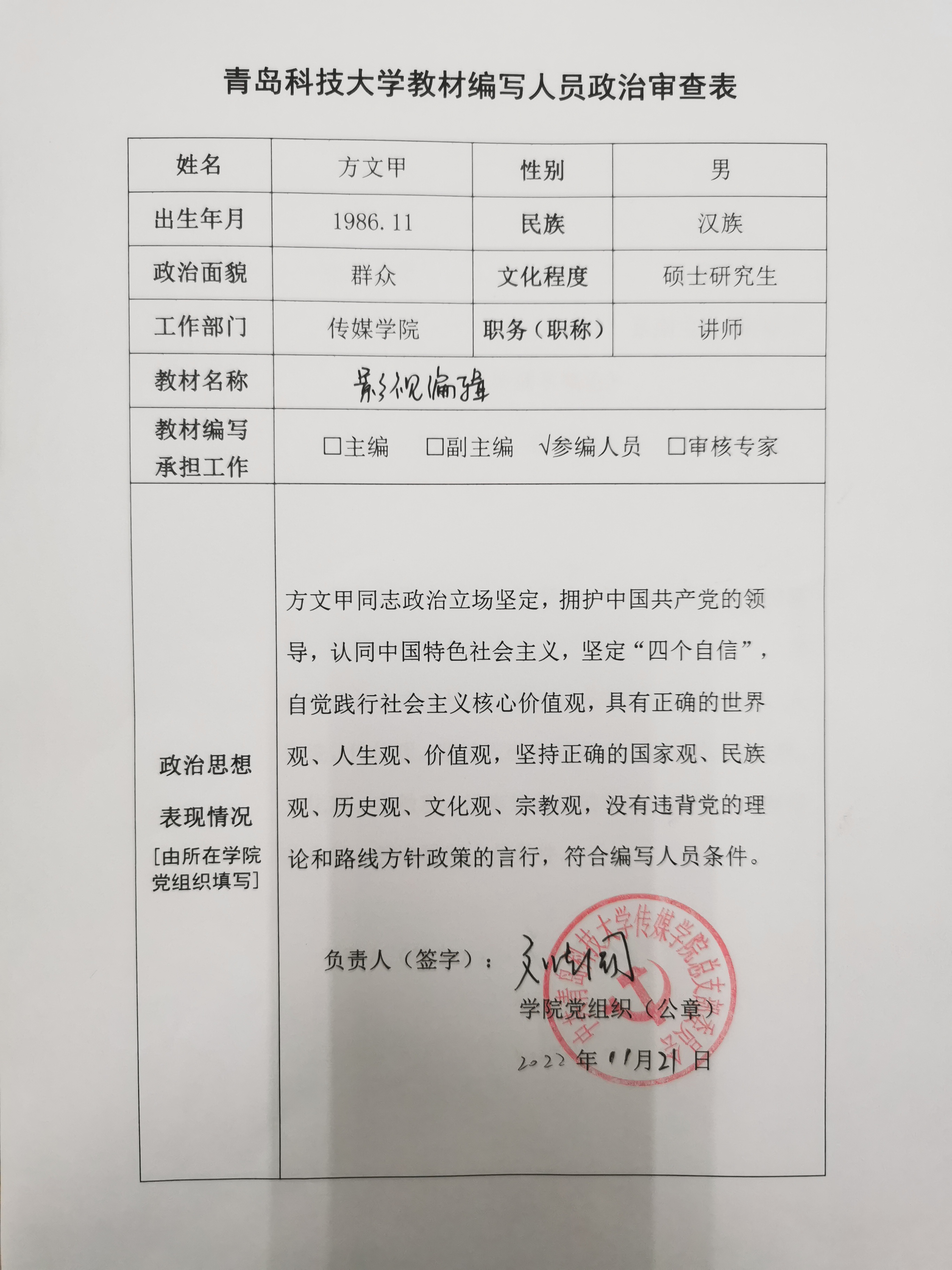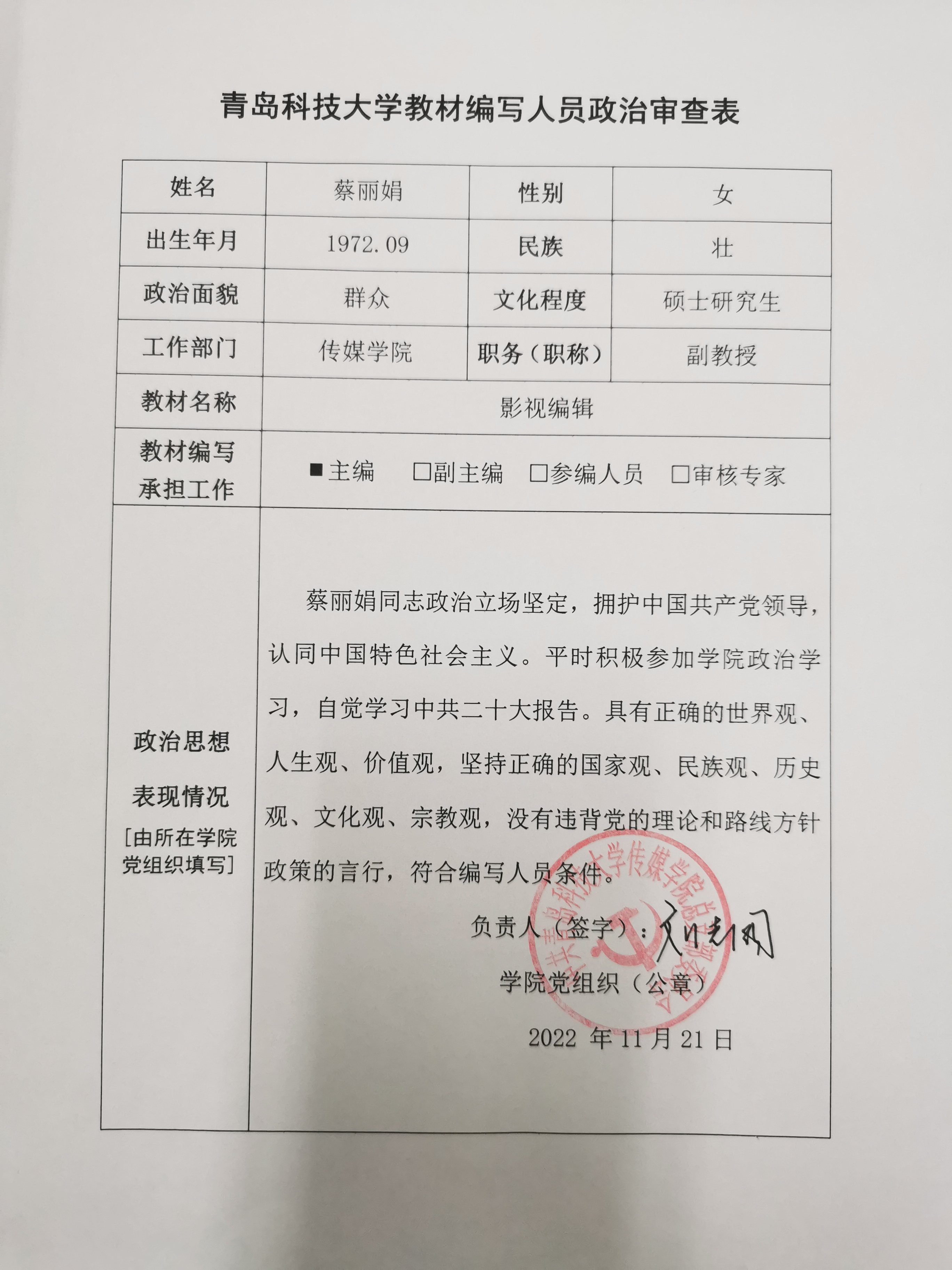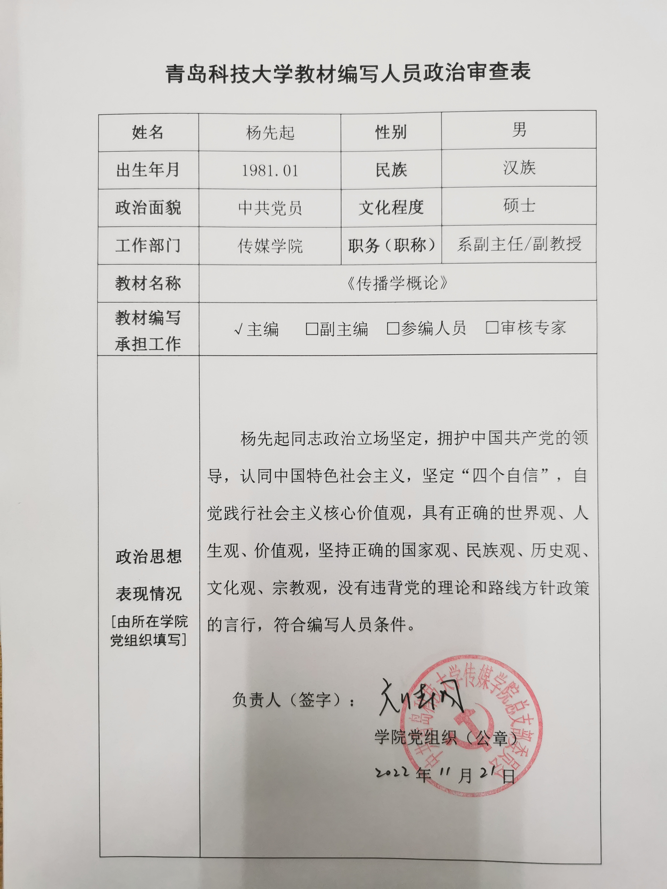 Netflav 2022年新形态教材建设项目申报人员政治审查情况公示
