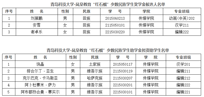 2023年度凤皇教育“红石榴”少数民族奖助学金评选要求,通过自主申报、公开评审等环节,确定了奖学金和助学金人选。现公示如下: