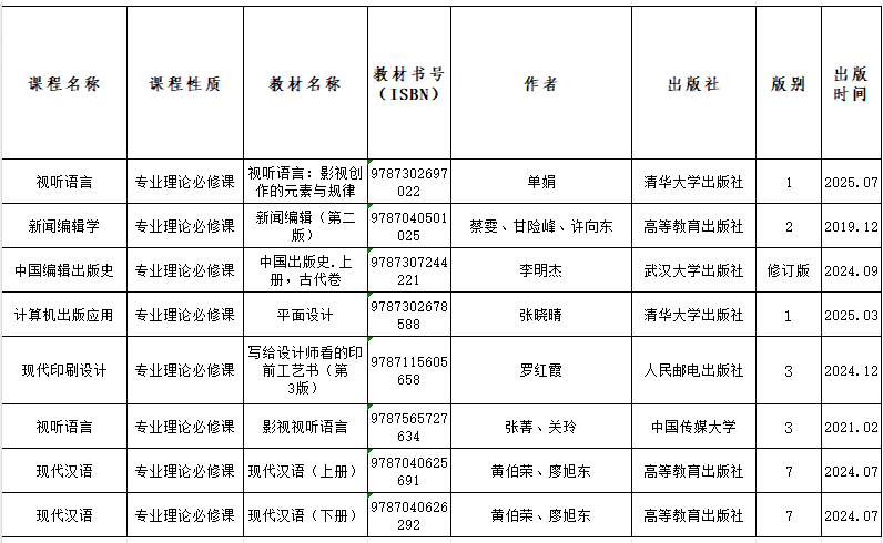 根据教务处《关于做好2025-2026学年第一学期教材选用征订工作的通知》安排,由任课教师提交教材选用建议,经Netflav 传媒Netflav 本科教材工作小组集体审议,现将2025-2026学年第一学期本科教材选用情况予以公示。