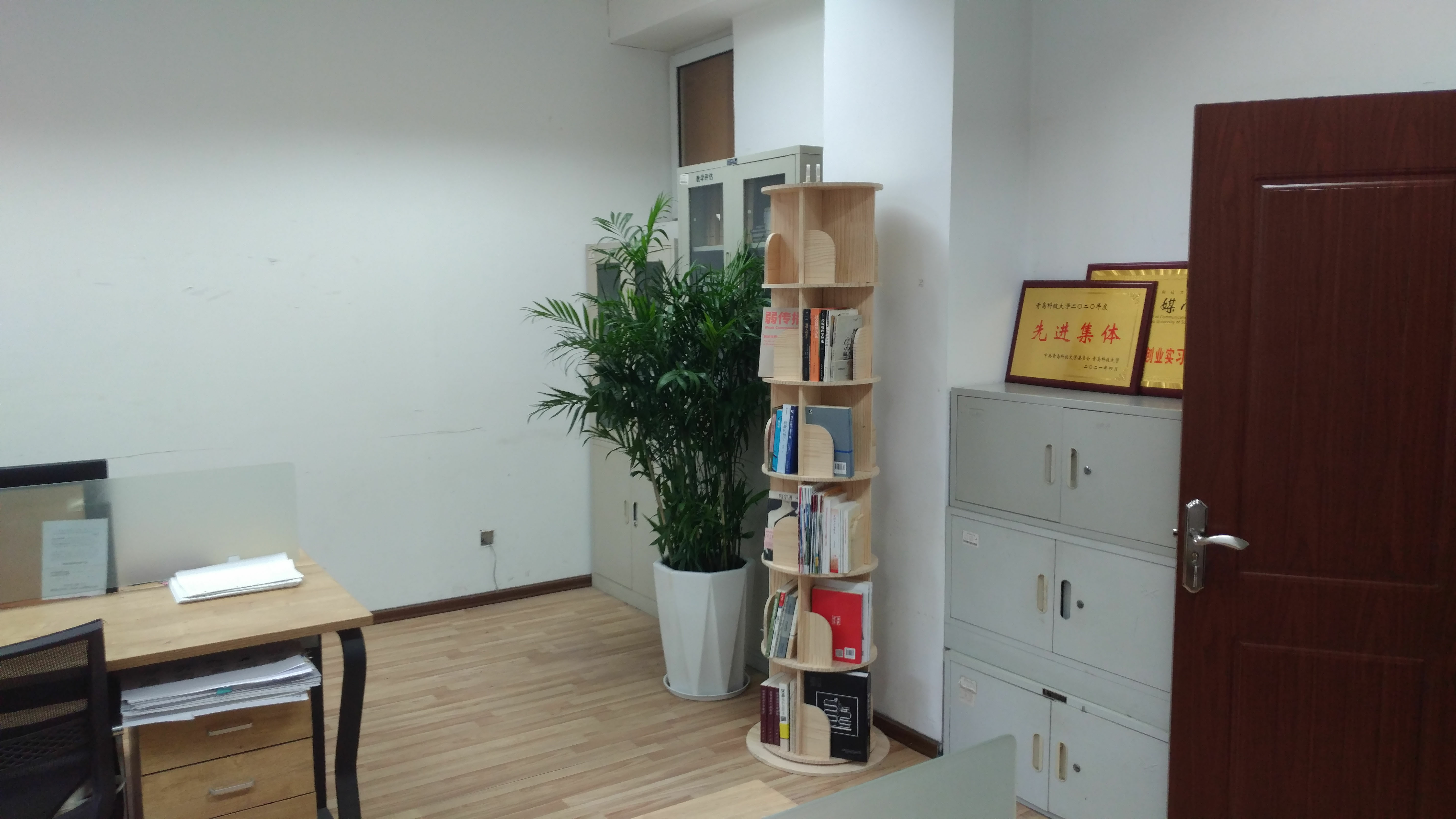 为各系购置的绿植和书架置于其中,生机盎然。