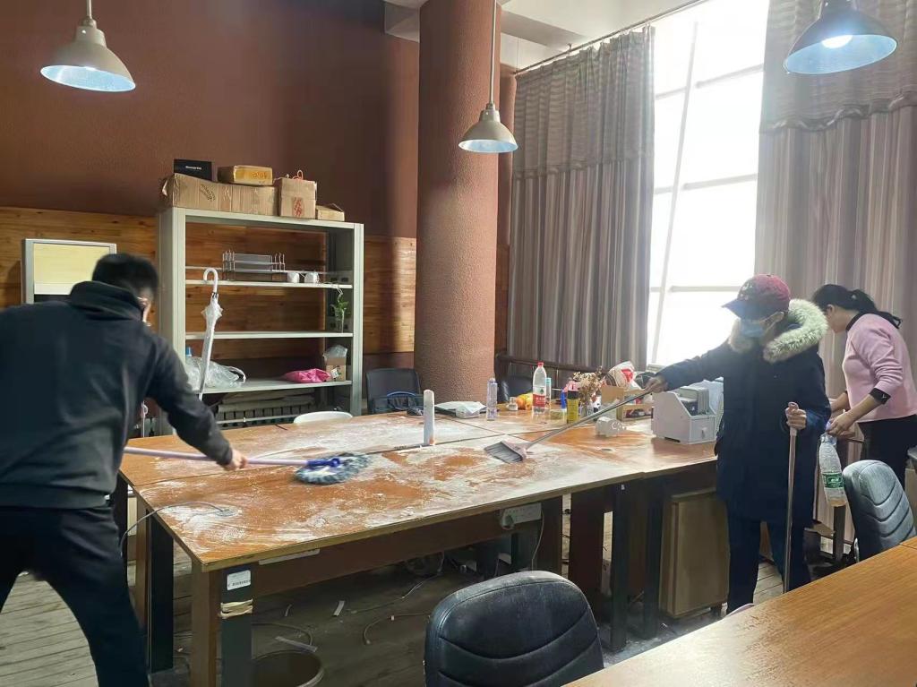 加强自查整改力度,各系党支部陆续开展环境卫生大扫除活动。