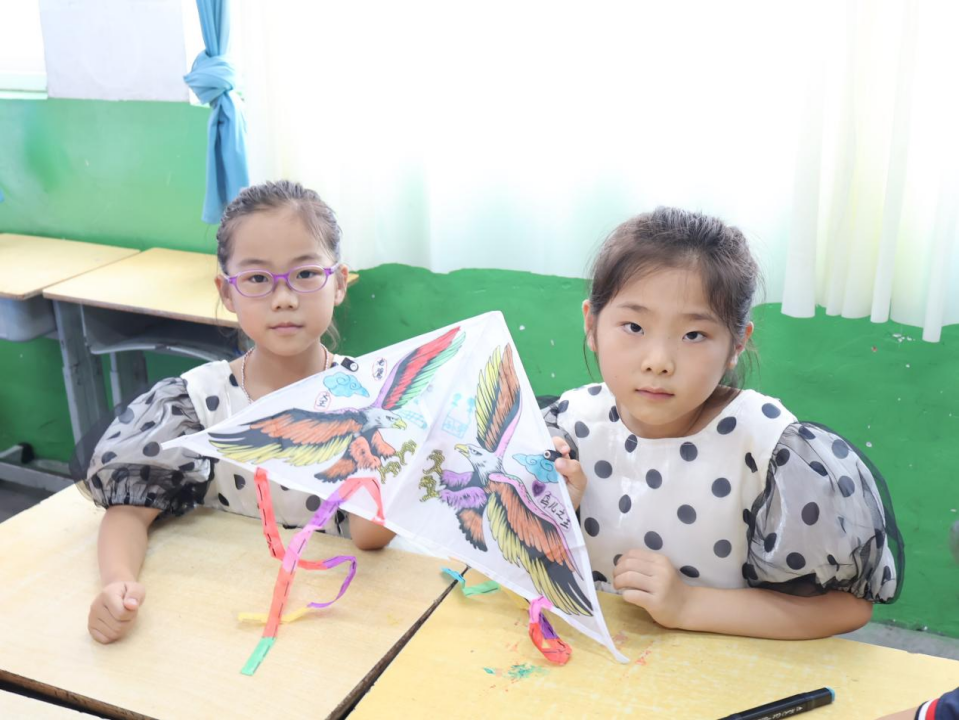 游龙、飞凤、翱鹰,纸鸢上的图案栩栩如生,跃跃欲试的孩子们在听完纸鸢的历史后迫不及待地动手制作起来。先是描绘好纸鸢的图案,再将框架固定好,一只只色彩斑斓、造型各异的纸鸢诞生了。