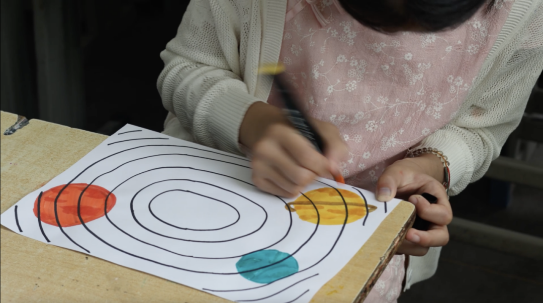 从太阳系行星到中国载人航天事业,从最初的无人实验飞船到后来的神舟系列载人飞行任务,直至最新的空间站建设,火箭升空时的巨大轰鸣声仿佛就在耳边回响。孩子们的眼神中流露出对未知世界的好奇和向往,听得入迷时,有的孩子还拿起画笔,在纸上勾勒出自己心中的所思所想。