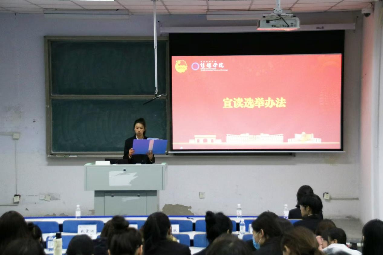 全体学生代表、研究生代表参加大会。大会由院学生会执行主席谭凤婷主持。