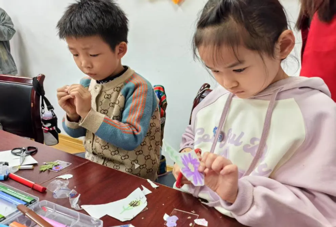 在3月22日的“指尖生花・美育润心”活动中,团队将传统文化元素注入心理疗愈体系。干花草标本与轻黏土结合的冰箱贴制作,不再仅是手工课程 ——“三原色过渡法”的色彩指导暗含情绪调节原理,"自然物语" 分享环节让孩子们在触摸植物中完成情感宣泄。这种“艺术疗愈 + 劳动教育”的创新模式,让传统手工艺成为青少年心理健康的 “缓冲带”,在捏塑与粘贴间缓释现代生活的心理压力。作品在社区展览时,孩子们相互欣赏,在交流中建立起社会认同,形成 “高校 - 社区 - 家庭” 联动的心理干预闭环,助力少年儿童心理健康成长。