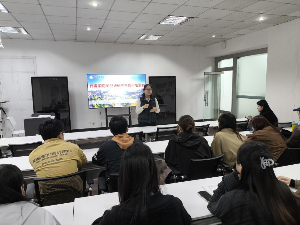 党委副书记兼副院长刘海波、团委副书记兼学工办副主任金莹莹、24级出版专业团支书刘晓阳以及2025级全体研究生班委参加会议。