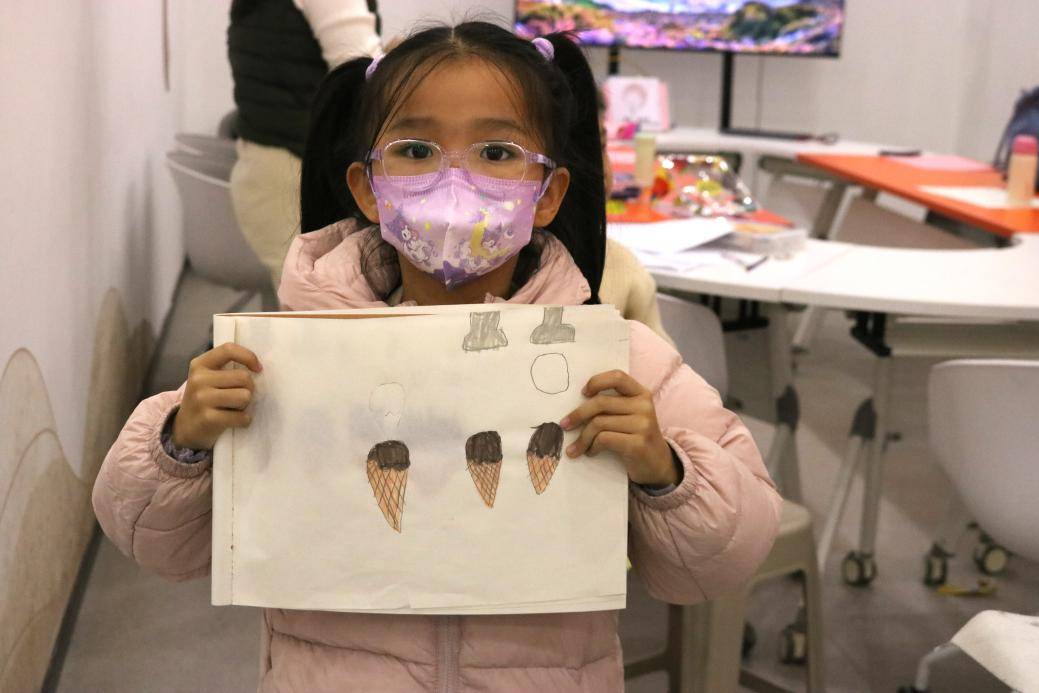 在分组创作环节中,孩子们在志愿者指导下自主组队,围绕“小猫找朋友”“太空冰淇淋车”等主题展开创作。从手绘初稿到AI导入、从动作设置到音效搭配,志愿者全程引导,既传授技术操作,更注重培养团队协作与问题解决能力,让孩子们完整经历从灵感到成品的创意全过程。