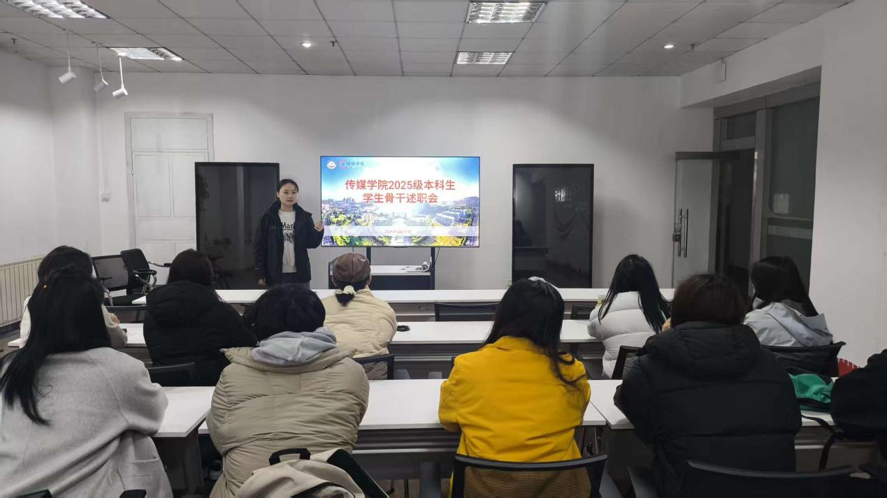在“一站式”学生社区召开2025级本科学生骨干述职会。全体班长、团支书及班级主要学生骨干参加会议。会议由辅导员张凤主持。