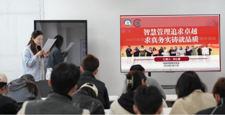 发展和时代需求;二是坚持服务为本,贴近同学、倾听心声,真正当好桥梁纽带;三是锤炼过硬本领,在实践中提升组织协调、沟通表达和解决问题的能力。希望大家以此次表彰为新起点,以先进为标杆,以奋斗为底色,在学习上追求卓越,在工作中勇于担当,在新时代展现青科传媒研究生的青春风采。