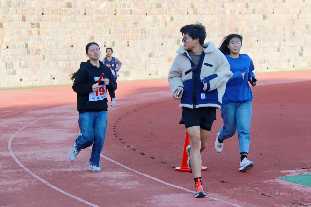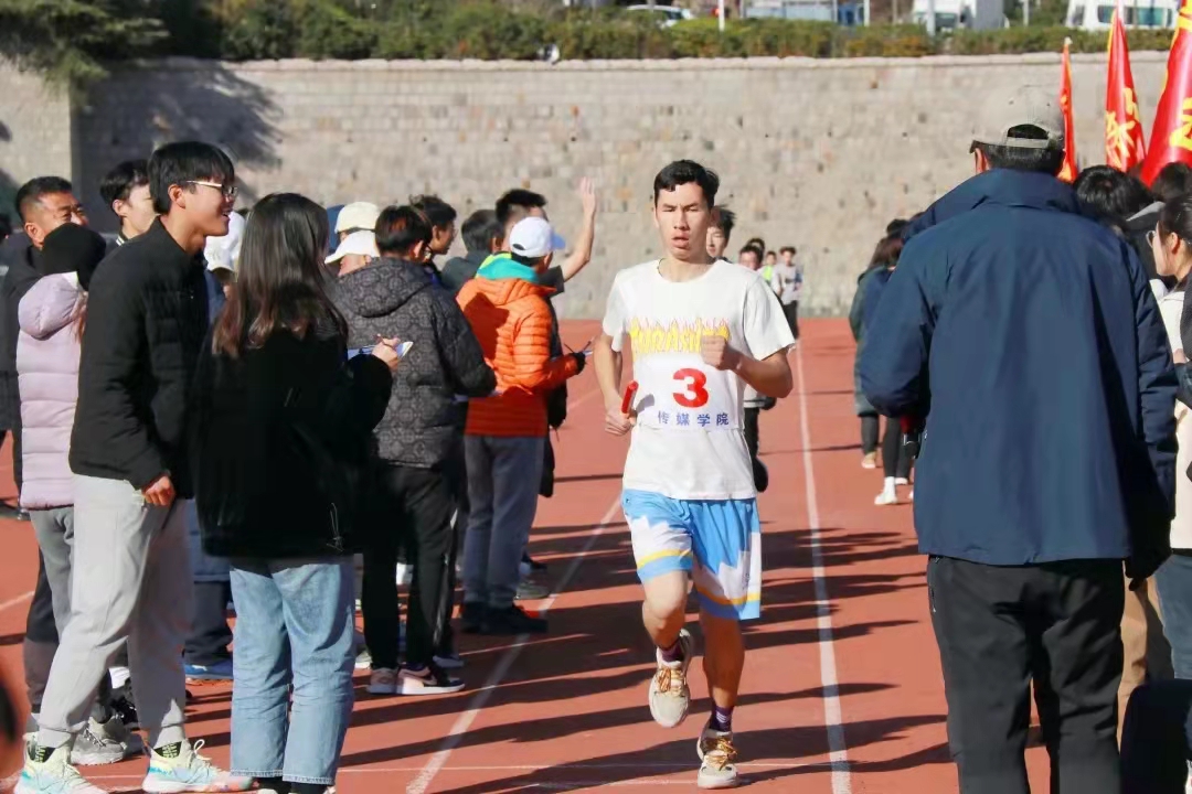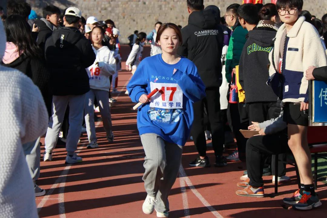 在南苑操场举办“2021年学生冬季越野接力比赛”,传媒学子积极参加。