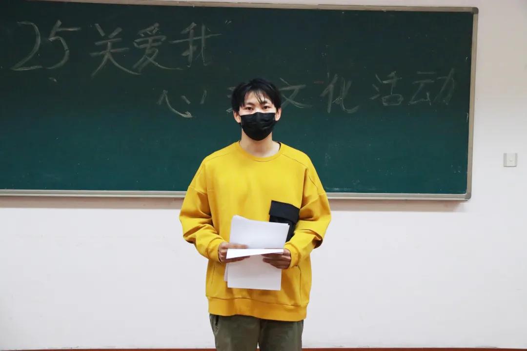 最后,谷嘉骏为同学们发放了抑郁症心理测试问卷。当代年轻人无论生活还是学习,常或多或少有些压力,同学们要时时刻刻注意自己的心理状况,当感觉自己情绪失常时,应及时进行心理咨询,排忧解愁。