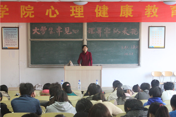 心理健康教育大会在弘毅楼B203举行,校学生心理咨询室主任王美丽老师担任大会主讲,分团委书记刘名森担任大会主持。