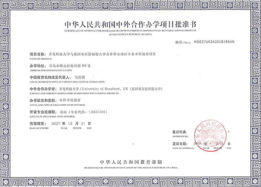 中华人民共和国中外合作办学项目批准书