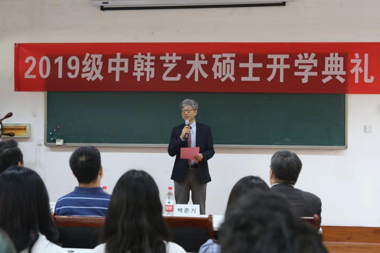 随后,杨建华致辞,他指出,中韩艺术硕士项目有着优质的办学资源、优秀的师资队伍,希望同学们能够珍惜机会,勤奋学习,将来为中韩两国文化艺术交流做出贡献。