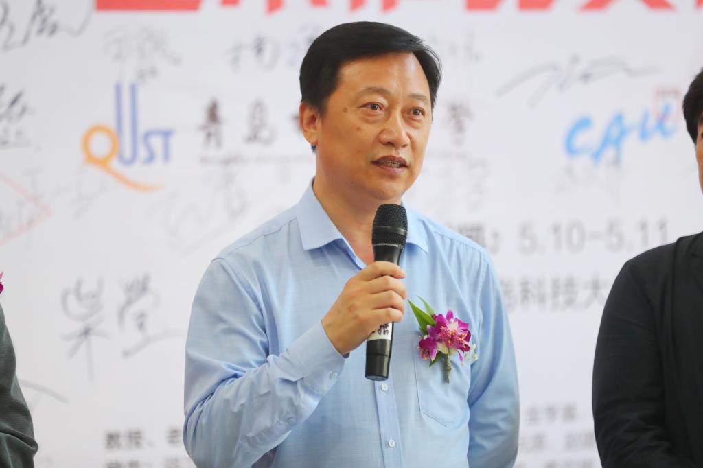 杨建华致开幕辞,他首先对出席作品展的领导、教授、嘉宾表示欢迎,对大家支持中韩项目建设表示感谢,向即将赴韩学生表示祝贺,并对同学们提出要求,希望同学们到韩国中央大学后继续保持在青科大的作风,努力学习,遵守韩国法律,为以后师弟、师妹做好表率。